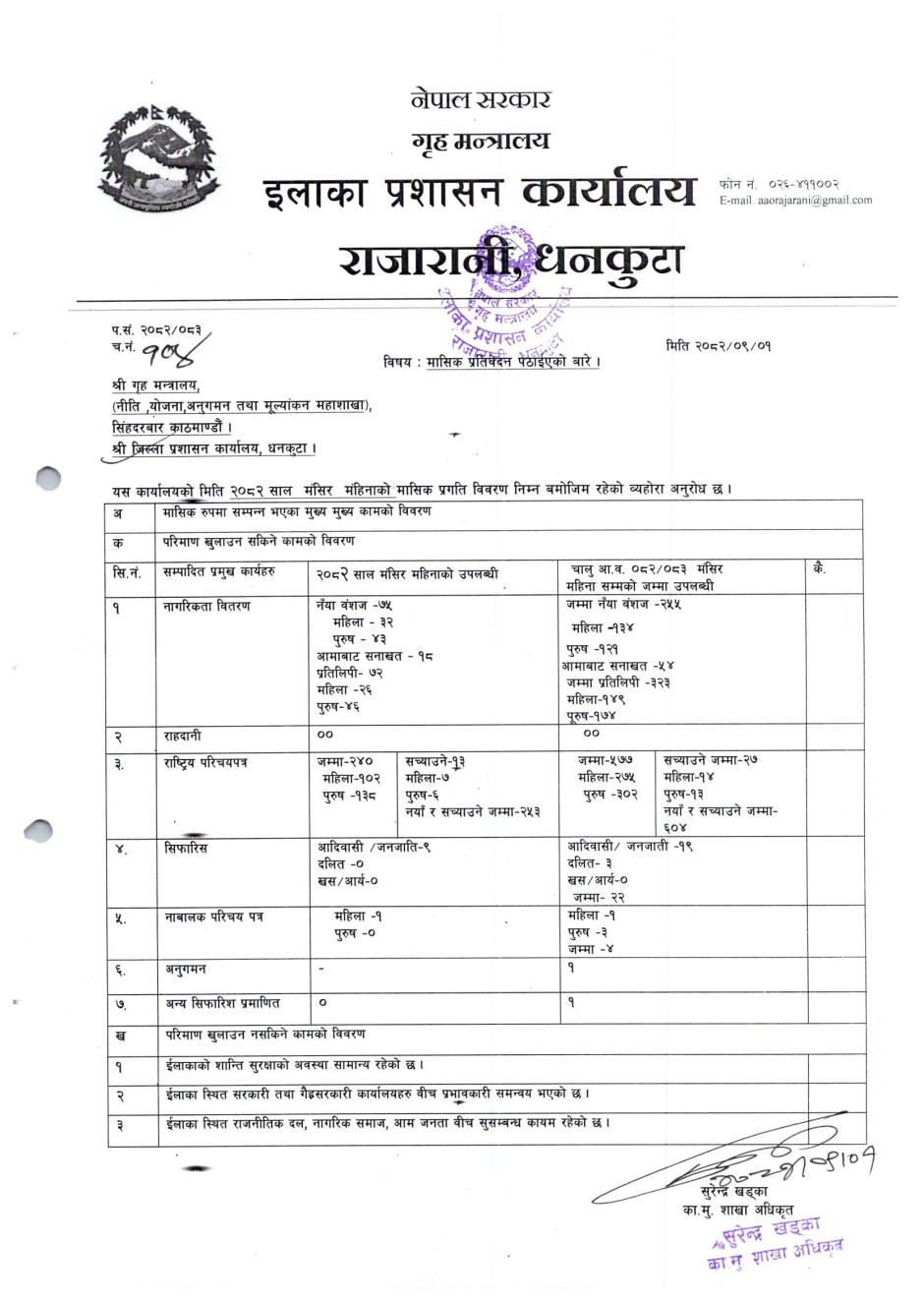 २०८२ साल मंसिर महिनाकाे प्रगति विवरण ।